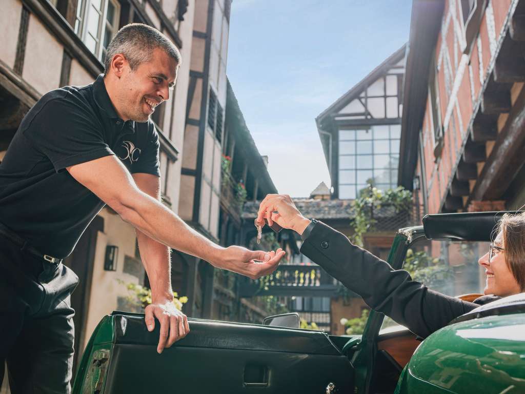 Niché dans le centre historique de la capitale alsacienne, l'édifice offre un écrin néobaroque à deux pas de la cathédrale et des rives de l'Ill. Pans de bois, galeries, tourelle et vitraux se conjuguent dans une atmosphère authentique et chaleureuse.